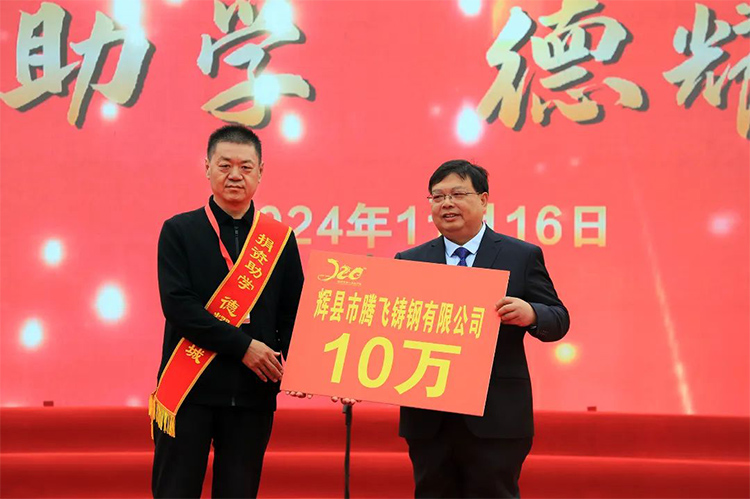 在這個(gè)意義非凡的日子里,我們公司的李總受邀出席了這場(chǎng)慶典。李總不僅作為嘉賓參與,更通過(guò)實(shí)際行動(dòng)展現了對教育事業(yè)的支持與尊重——騰飛鑄鋼慷慨捐贈了十萬(wàn)元人民幣,支持學(xué)校發(fā)展。