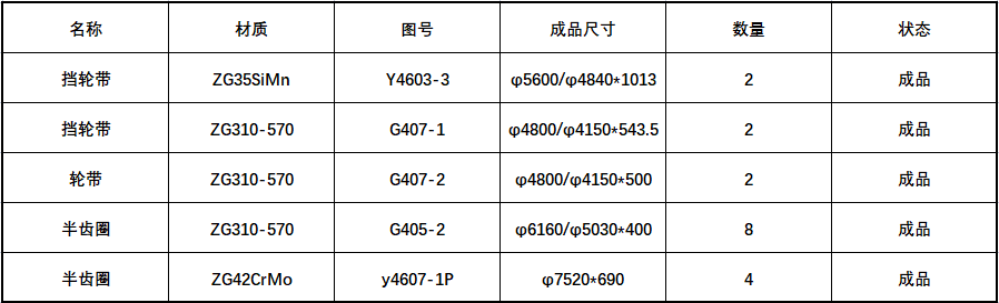 成品尺寸:φ6160/φ5030*400,材質(zhì)ZG310-570